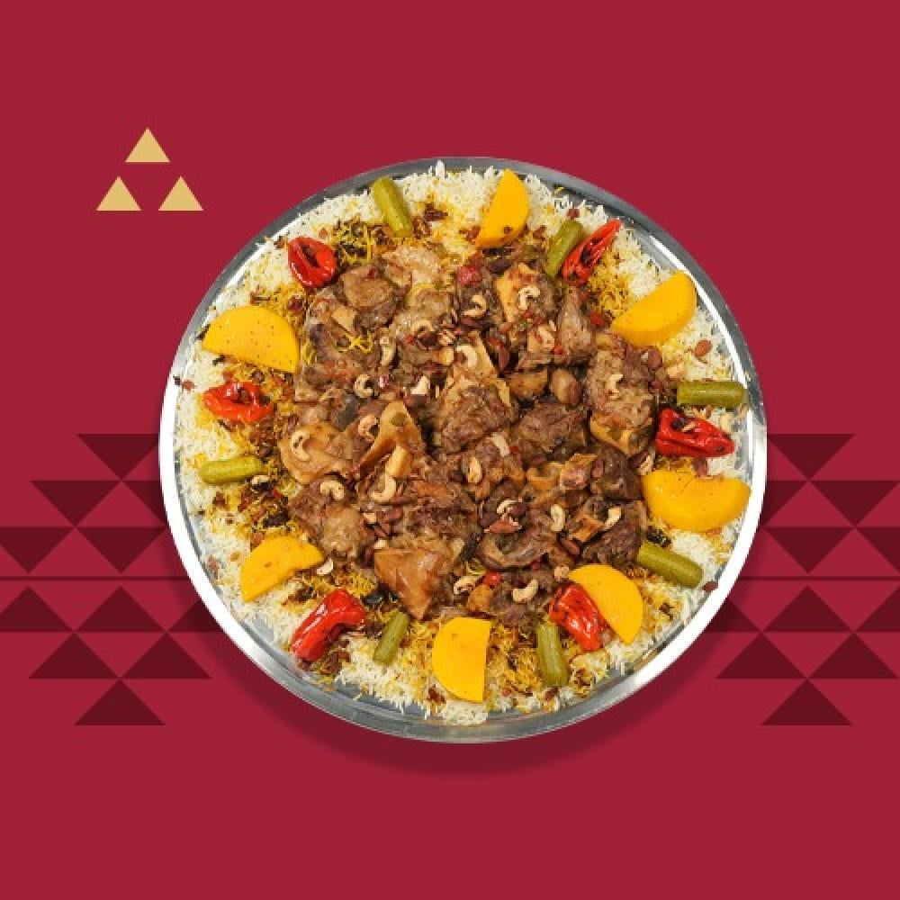 لحم حاشي طازج ومكشّن بالبصل والفلفل على الطريقة النجدية القديمة، يُقدَّم بالمكسرات مع خضار القصيم فوق أرز شعبي مطهو بالمرق. يكفي من 8 إلى 10 أشخاص.